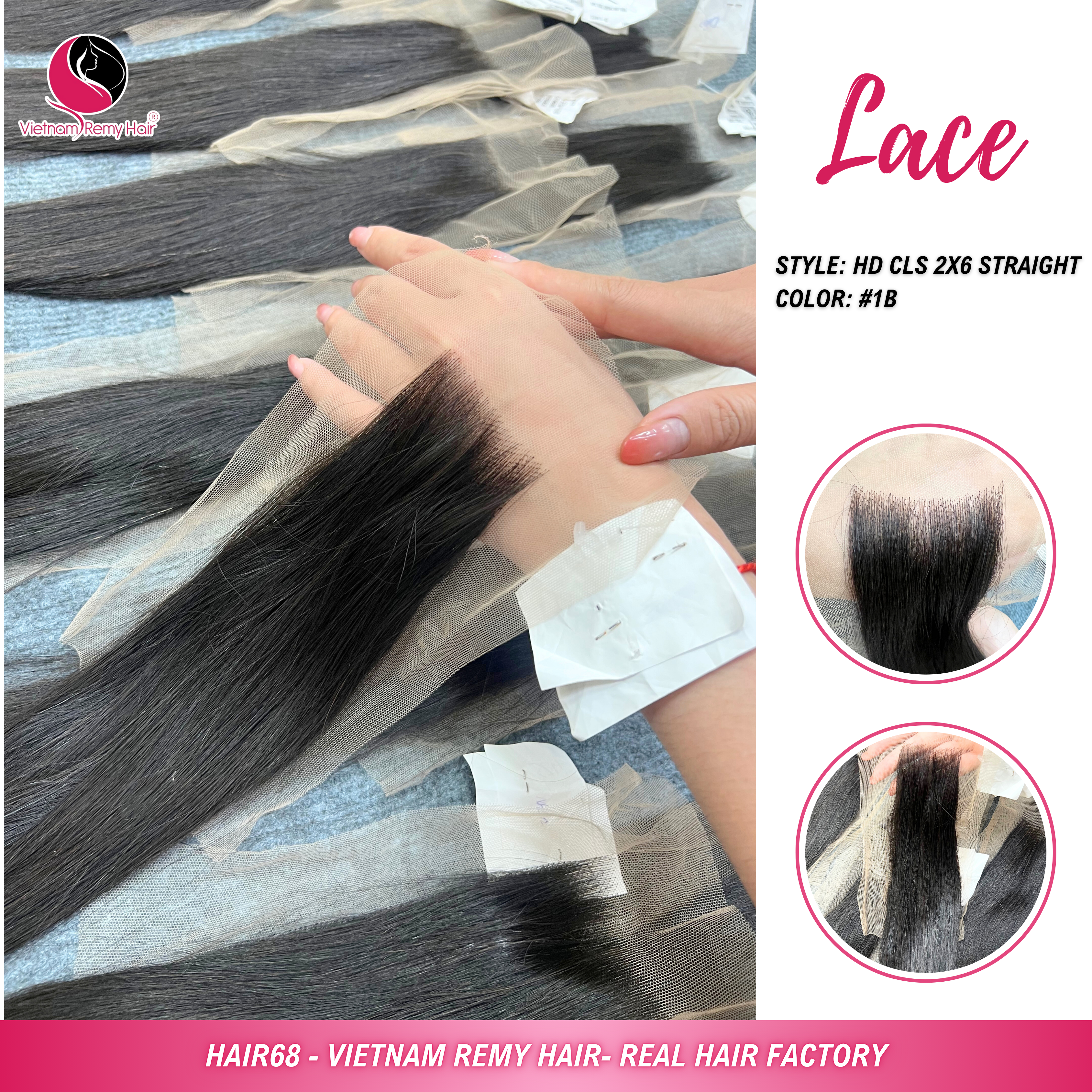 Matière : Cheveux vietnamiens naturels et Remy. Type de dentelle : Dentelle haute définition (HD) et dentelle standard. Nous proposons des lace frontales HD et normales, transparentes ou brunes, suffisamment résistantes pour un port prolongé et assez fines pour se fondre parfaitement à toutes les carnations. Tailles de closure : 2x4, 2x6 , 4x4, 5x5, 6x6. Tailles de frontale : 13x4, 13x6. Qualité des cheveux : cheveux vierges de donneuse et cheveux naturels de la plus haute qualité. Longueur : de 20 à 71 cm. Textures : lisses, ondulées naturelles, bouclées souples, frisées et plus encore. Couleur : noir naturel, coloration personnalisée disponible.