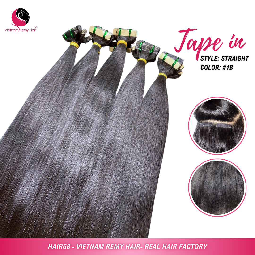 Les extensions à bandes adhésives sont composées de fines mèches de cheveux pré-collées. Ces mèches mesurent généralement 2,5 cm de large. Vos cheveux naturels sont pris en sandwich entre deux bandes adhésives de qualité médicale. Grâce à leur extrême finesse, les extensions sont légères et d'apparence naturelle. Plus besoin de dentelle épaisse ni de clips visibles. Dans notre usine de cheveux au Vietnam , nous utilisons des mèches 100 % naturelles pour garantir une qualité optimale à chaque pose.