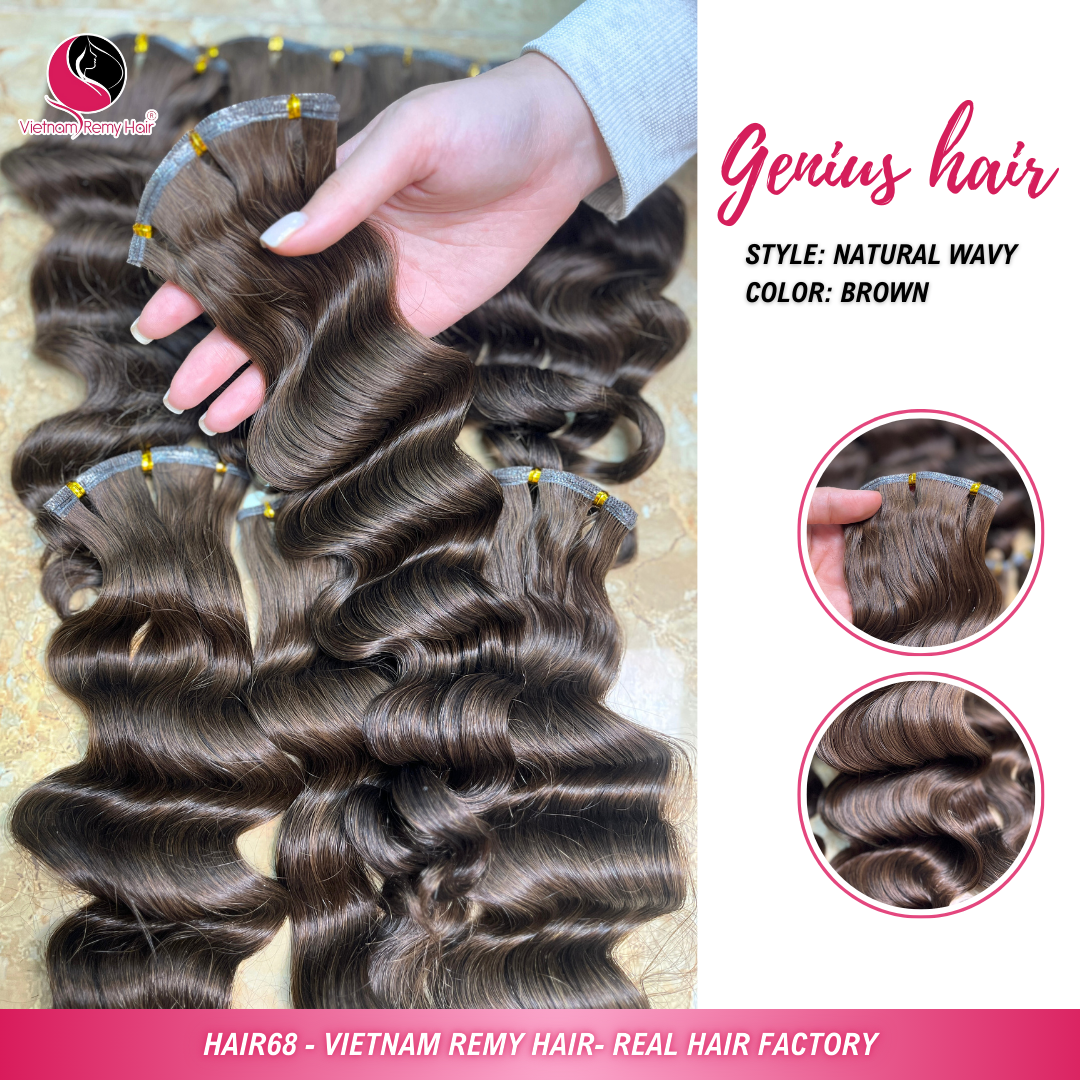 Natural Wavy #2 brown Virgin genius hair extension double