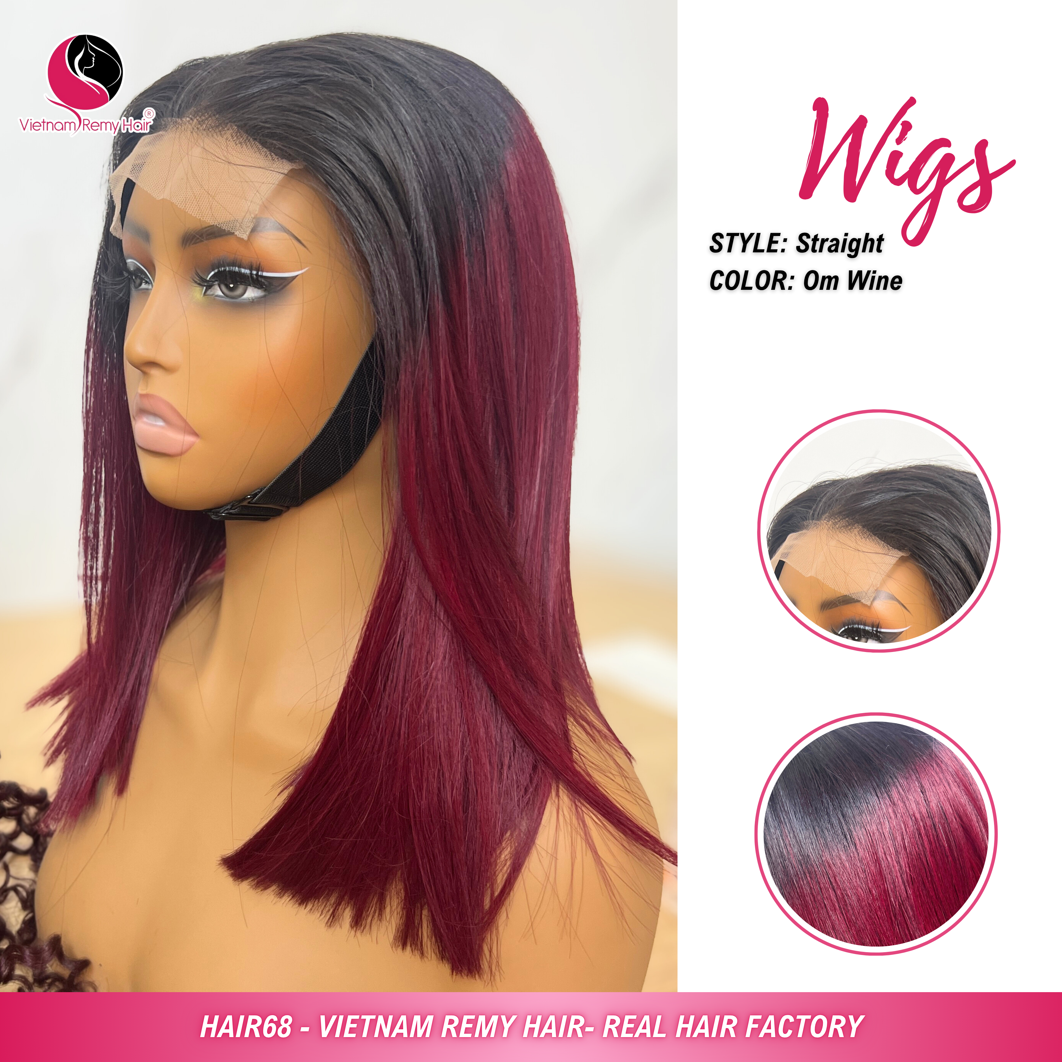 REMY STRAIGHT WIGS CLOSURE – OMBRE WINE – MIDDLE PART Drawn — Premium Vietnamese REMY hair extensions. Factory direct. Stable quality and fast shipping worldwide.